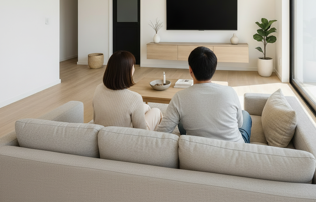光が入りやすくて、日中はほとんど電気をつけなくてOK。開放感があって、家族みんなが自然と集まる場所です。